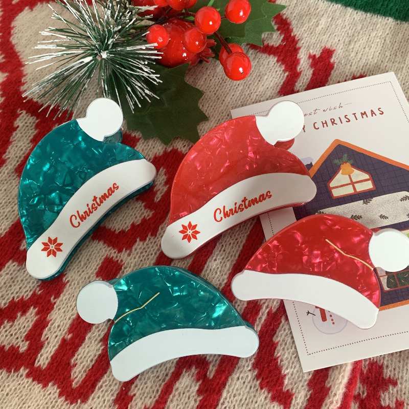 New Christmas red green Santa hat hairpin hair accessories Cute fairy back of head grab clip shark clip side clip