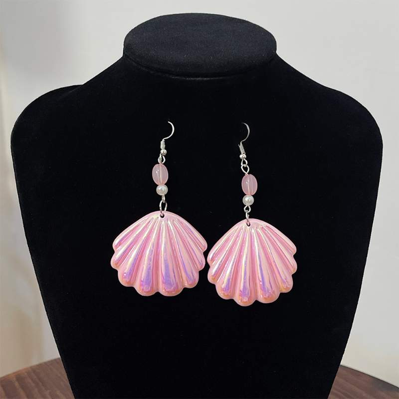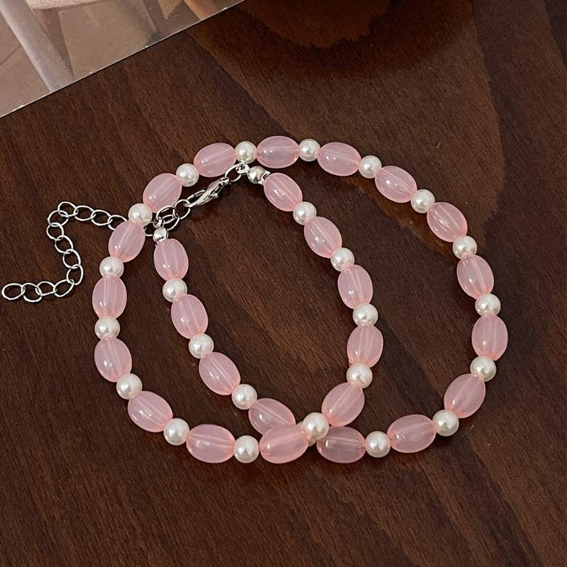 New fashion pink shell beaded jewelry set Bright color small fresh acrylic earring necklace bracelet